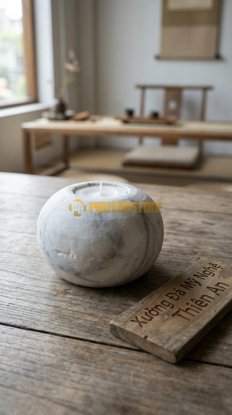 Trong các phòng thờ hiện đại hoặc góc thiền, chân nến hình cầu đóng vai trò như một vật phẩm hội tụ linh khí. Ánh sáng của nến tượng trưng cho trí tuệ, khối đá hình cầu tượng trưng cho sự vững chãi của tâm trí. Thay vì những mẫu chân nến đồng truyền thống có phần nặng nề, nhiều gia chủ trẻ hiện nay ưu tiên dùng đá tự nhiên để không gian thờ tự trở nên thanh thoát hơn. Bạn cũng có thể tham khảo thêm các mẫu chân nến bằng đá bằng đá cổ điển nếu muốn giữ nét trang nghiêm nhưng vẫn mang hơi thở đá tự nhiên.