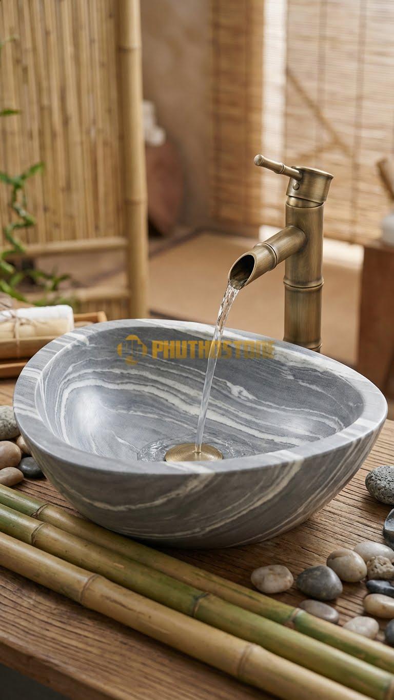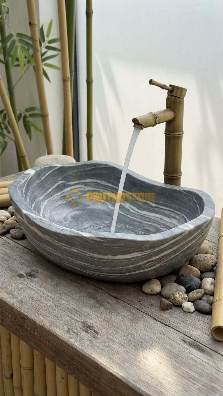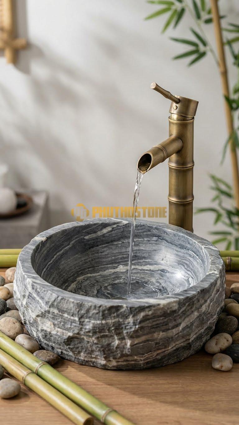 Nhiều người lầm tưởng đá tự nhiên chỉ hợp với phong cách cổ điển. Thực tế, qua kinh nghiệm thi công tại Phú Thọ Stone, tôi thấy Chậu Rửa Tay - Đá Xám Vân Mây cực kỳ linh hoạt. Nó có thể phối hợp hoàn hảo với phong cách Minimalism (tối giản), Zen (thiền), hay thậm chí là Industrial (công nghiệp). Khi kết hợp với vòi nước bằng đồng giả cổ, nó mang lại vẻ hoài niệm; còn khi đi cùng vòi inox mạ chrome hiện đại, nó lại toát lên vẻ thanh lịch, thời thượng.