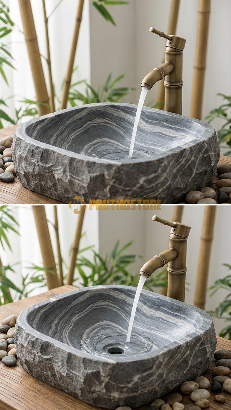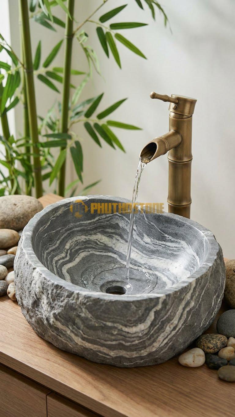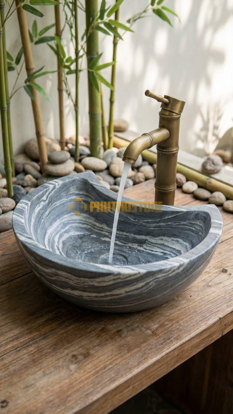 Nhiều người lầm tưởng đá tự nhiên chỉ hợp với phong cách cổ điển. Thực tế, qua kinh nghiệm thi công tại Phú Thọ Stone, tôi thấy Chậu Rửa Tay - Đá Xám Vân Mây cực kỳ linh hoạt. Nó có thể phối hợp hoàn hảo với phong cách Minimalism (tối giản), Zen (thiền), hay thậm chí là Industrial (công nghiệp). Khi kết hợp với vòi nước bằng đồng giả cổ, nó mang lại vẻ hoài niệm; còn khi đi cùng vòi inox mạ chrome hiện đại, nó lại toát lên vẻ thanh lịch, thời thượng.