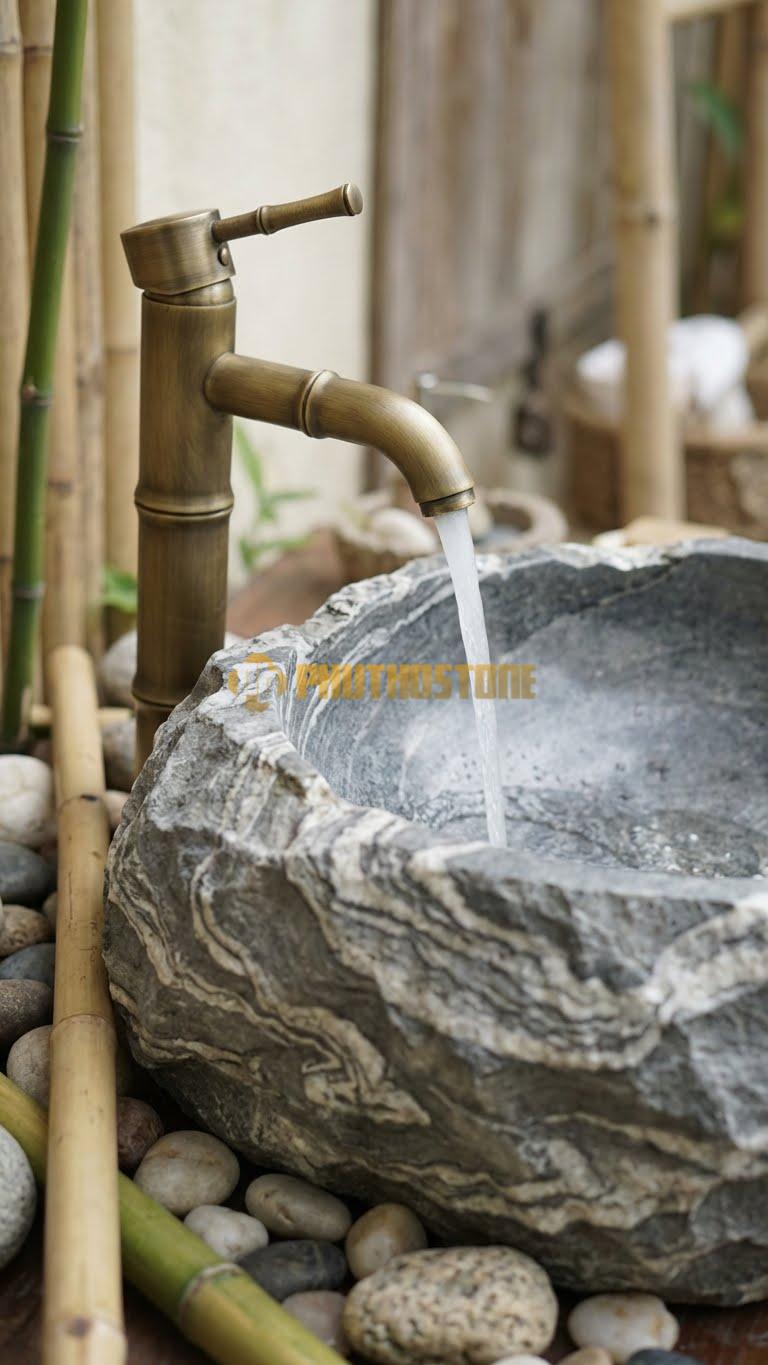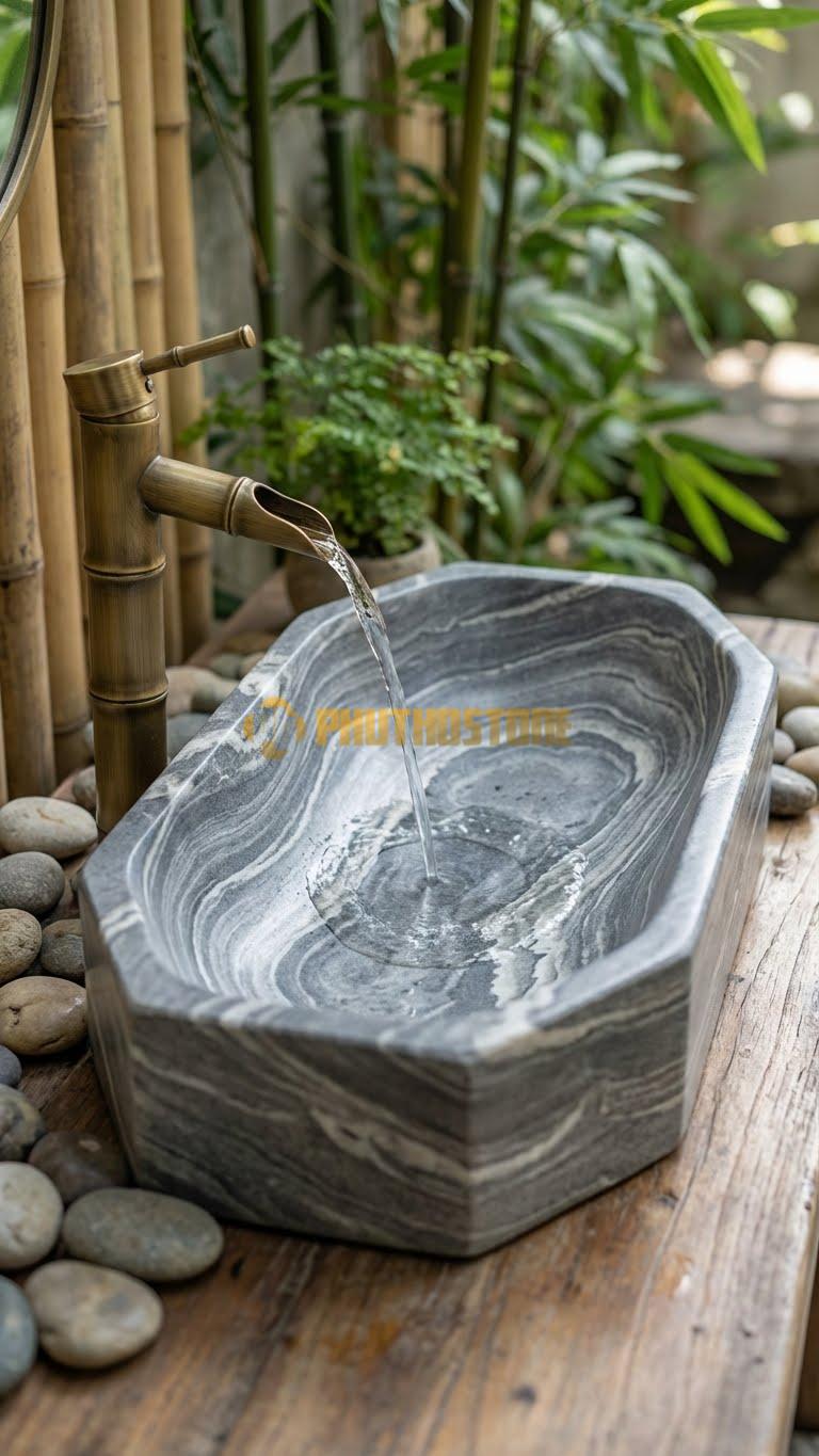 Ngược lại, nếu không gian của bạn quá tối giản, hãy chọn những mẫu chậu có vân đậm, rõ nét để tạo điểm nhấn thị giác mạnh mẽ. Ánh sáng cũng đóng vai trò then chốt. Việc sử dụng đèn LED ánh sáng vàng ấm soi rọi trực tiếp vào lòng chậu sẽ làm nổi bật các lớp vân đá và tạo nên một không gian vô cùng sang trọng, thư giãn như trong các spa cao cấp.