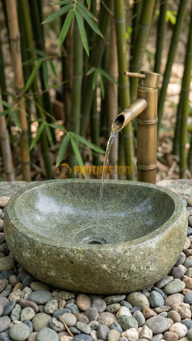Sai lầm phổ biến nhất mà tôi thường thấy là khách hàng dùng vòi inox sáng loáng cho chậu đá cuội. Điều này làm mất đi vẻ đẹp mộc mạc của sản phẩm. Sự kết hợp hoàn hảo nhất cho chậu rửa tay - lavabo đá cuội chính là các dòng vòi bằng đồng giả cổ hoặc vòi đá. Màu đồng vàng hoặc đồng đen sẽ cực kỳ ăn nhập với tông màu trầm của đá tự nhiên, tạo nên một tổng thể hài hòa và cổ điển.