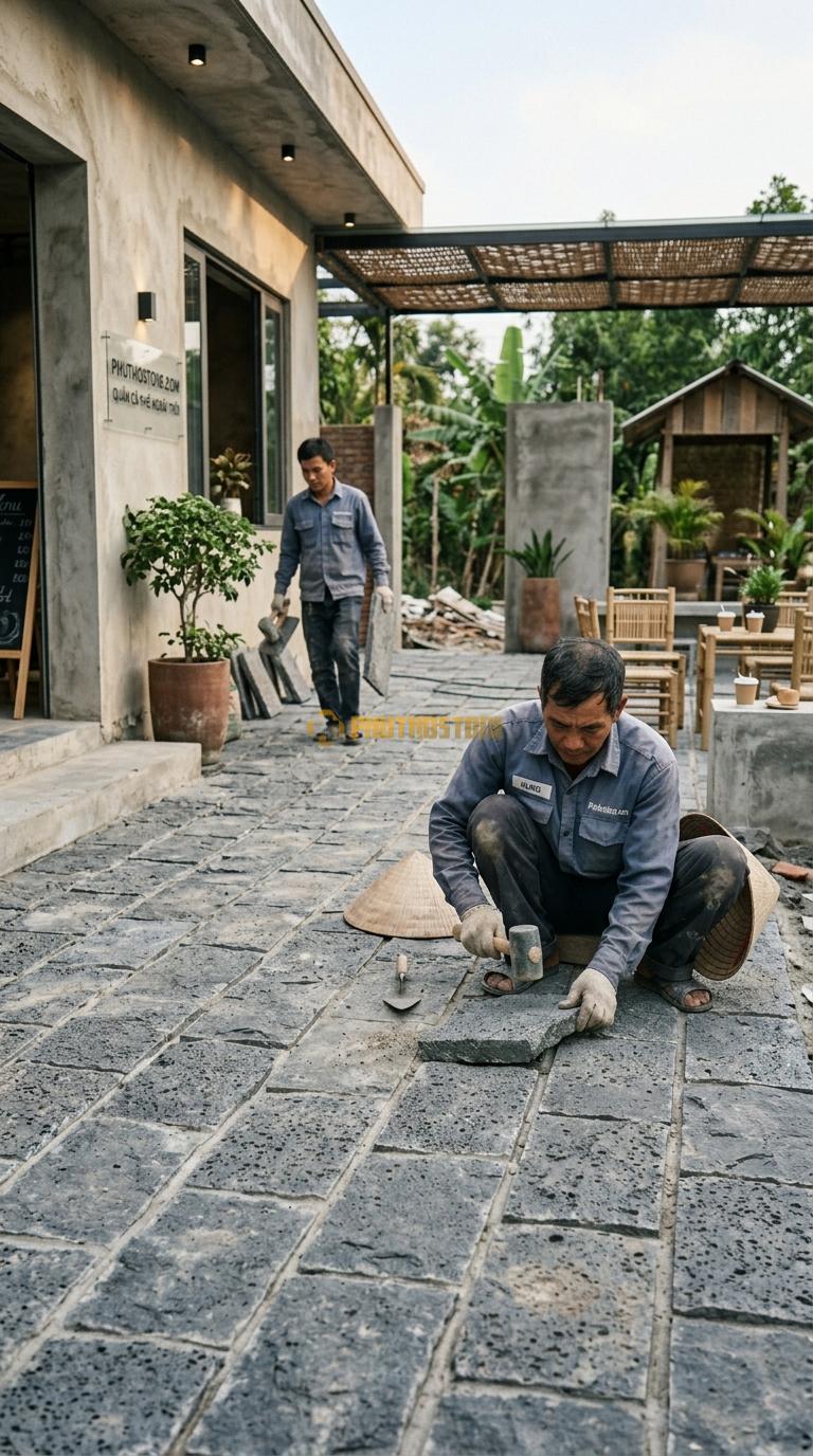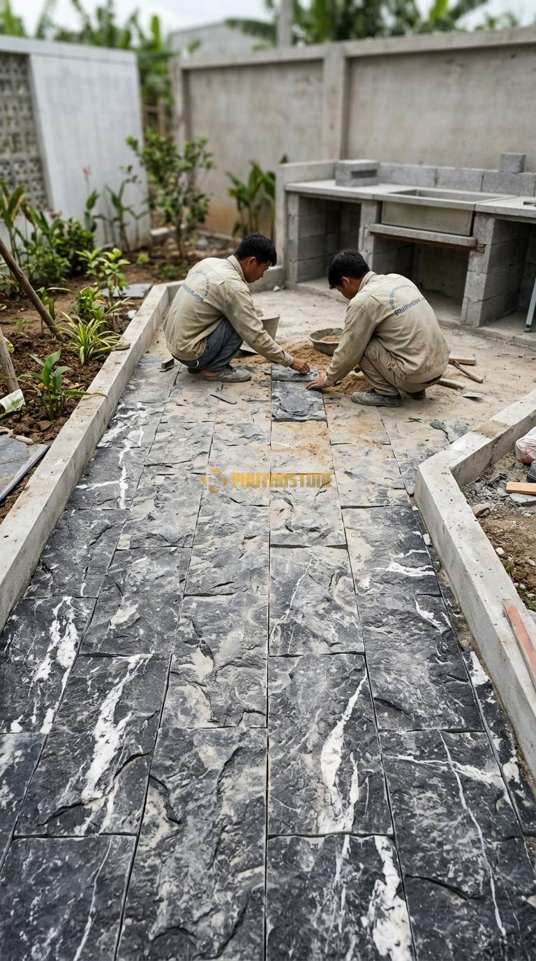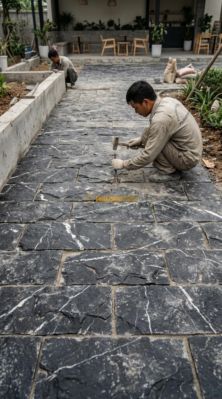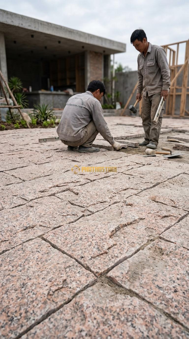 Một trong những điều quan trọng nhất là việc xử lý bề mặt cốt nền trước khi lát đá. Nhiều người chủ quan cho rằng đá tự nhiên cứng nên nền chỉ cần đầm qua loa là được. Sai lầm này dẫn đến việc đá bị sụt lún, nứt gãy sau một thời gian ngắn sử dụng. Nền lát đá cần được lu lèn chặt, có lớp bê tông lót đủ mác để tạo sự ổn định tuyệt đối cho các lớp đá bên trên.