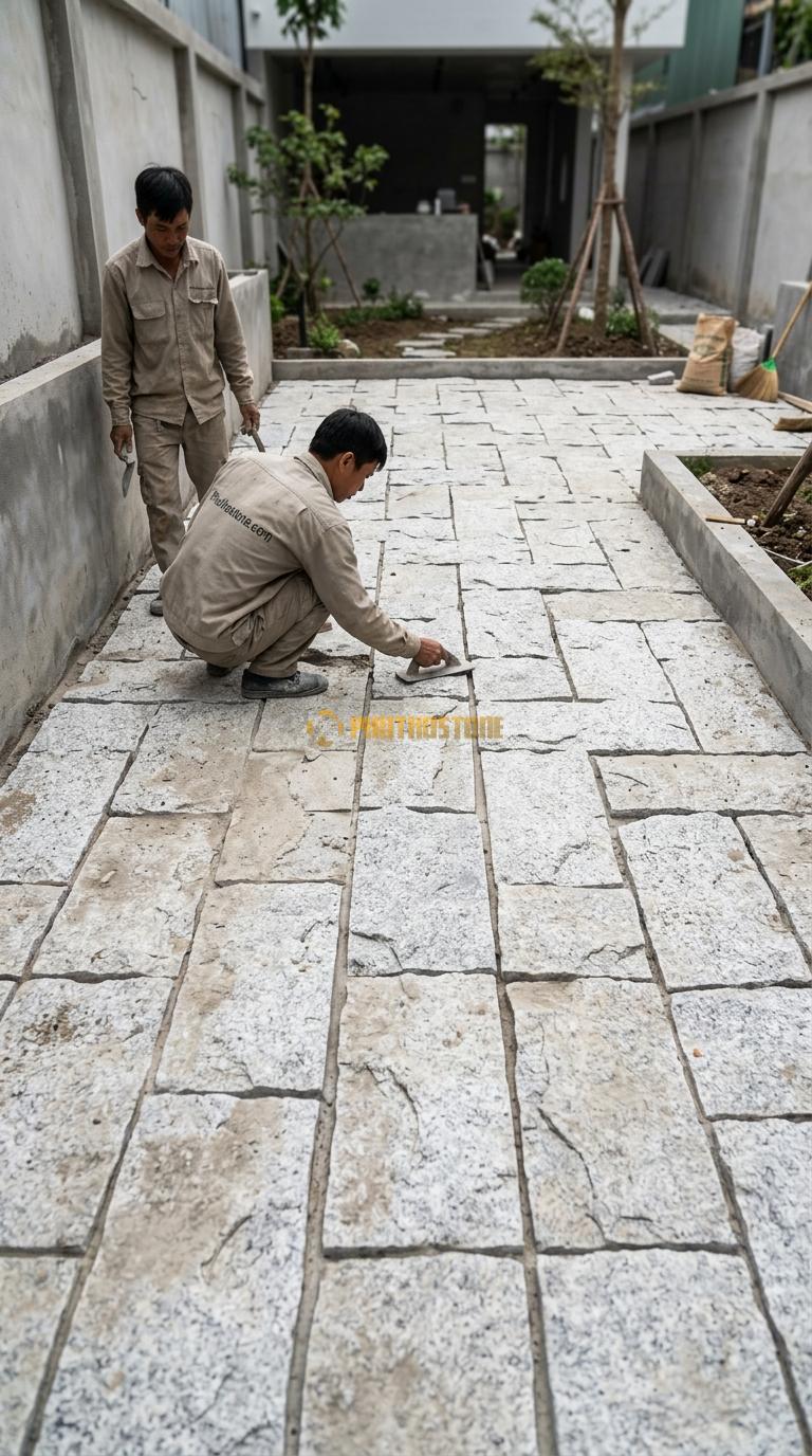 Quy trình thi công đá lát sân chuẩn để tránh sụt lún