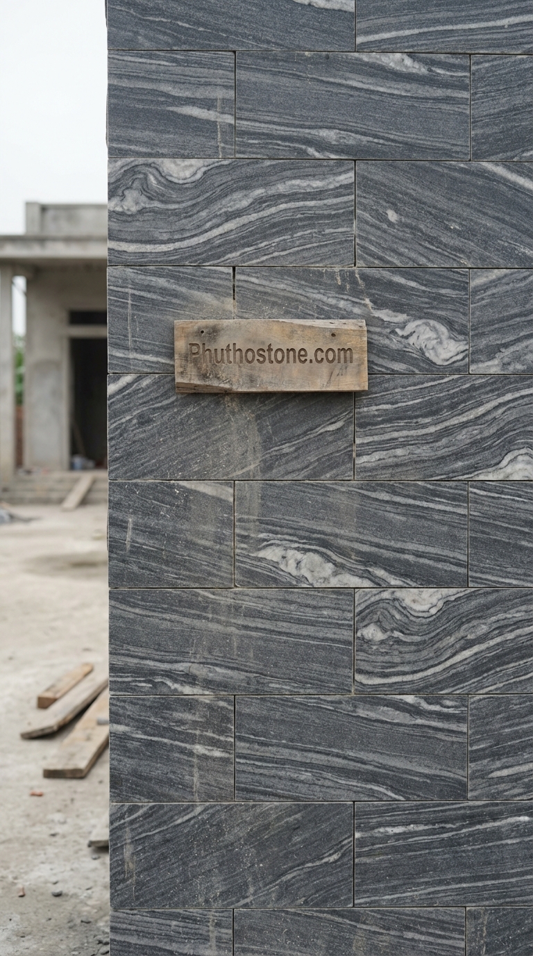 Bên cạnh đá bóc, xu hướng sử dụng đá ghép (đá que) cũng đang rất thịnh hành. Đây là những thanh đá nhỏ được kết dính lại thành từng tấm lớn bằng keo chuyên dụng. Ưu điểm của đá ghép là sự tinh tế, hiện đại và cực kỳ dễ thi công. Với những gia chủ yêu thích sự thanh lịch, đá ghép tự nhiên màu xám ghi hoặc xanh đen là lựa chọn không thể tuyệt vời hơn. Ngoài ra, tôi cũng thường tư vấn khách hàng kết hợp thêm đá ốp tường ban công đồng nhất với đá tường rào để tạo nên một sợi dây liên kết thẩm mỹ xuyên suốt từ cổng vào đến không gian sống bên trong.