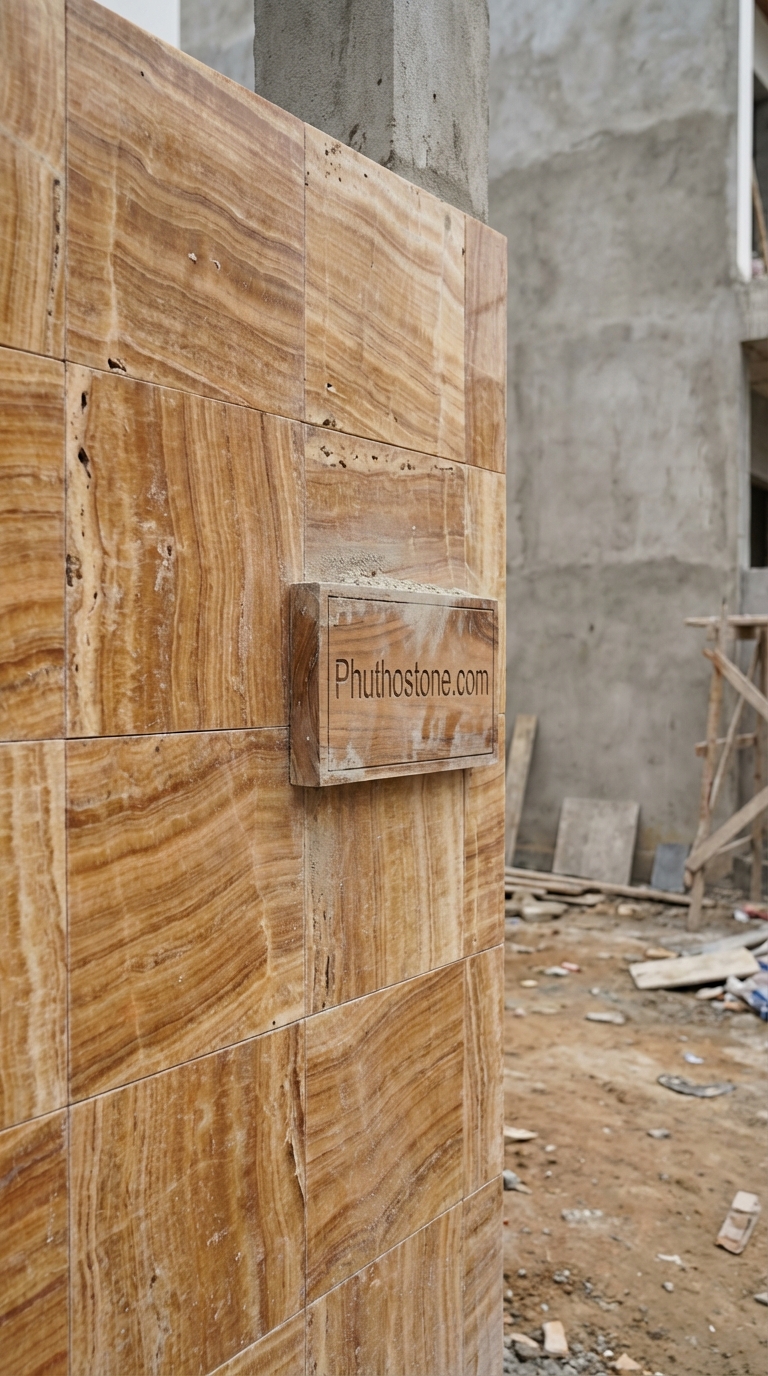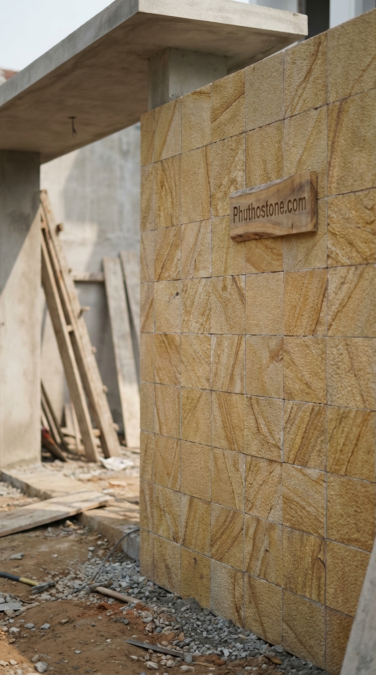 Bên cạnh đó, việc lựa chọn đá ốp tường ngoài trời cần đặc biệt chú ý đến loại keo dán đá. Tôi thường khuyên khách hàng sử dụng keo chuyên dụng thay vì dùng vữa xi măng truyền thống. Keo dán đá có độ đàn hồi tốt, giúp chịu được sự co giãn của đá khi nhiệt độ thay đổi đột ngột, từ đó ngăn chặn tình trạng đá bị bong tróc rơi xuống gây nguy hiểm. Ngoài ra, việc xử lý chống thấm cho bề mặt đá (đặc biệt là các dòng đá có độ xốp như tổ ong hay đá băm) trước khi thi công là bước không thể bỏ qua để giữ cho màu đá luôn tươi mới và ngăn ngừa rêu mốc tuyệt đối.
