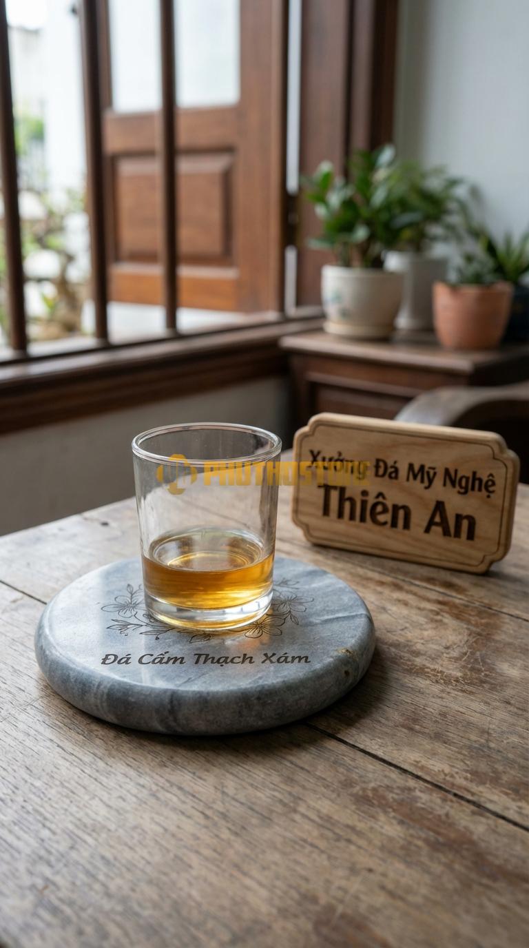 Không chỉ giới hạn trong việc lót ly rượu, những tấm đá khắc laser này còn rất đa năng. Tôi đã thấy khách hàng của mình dùng chúng làm đế nến thơm, giúp nhiệt độ của nến không làm hỏng mặt gỗ bên dưới. Hay có người lại dùng làm khay trưng bày đồng hồ, trang sức trên bàn trang điểm. Chính sự đa dạng này khiến đá tự nhiên trở thành vật liệu không bao giờ lỗi mốt trong trang trí nội thất.