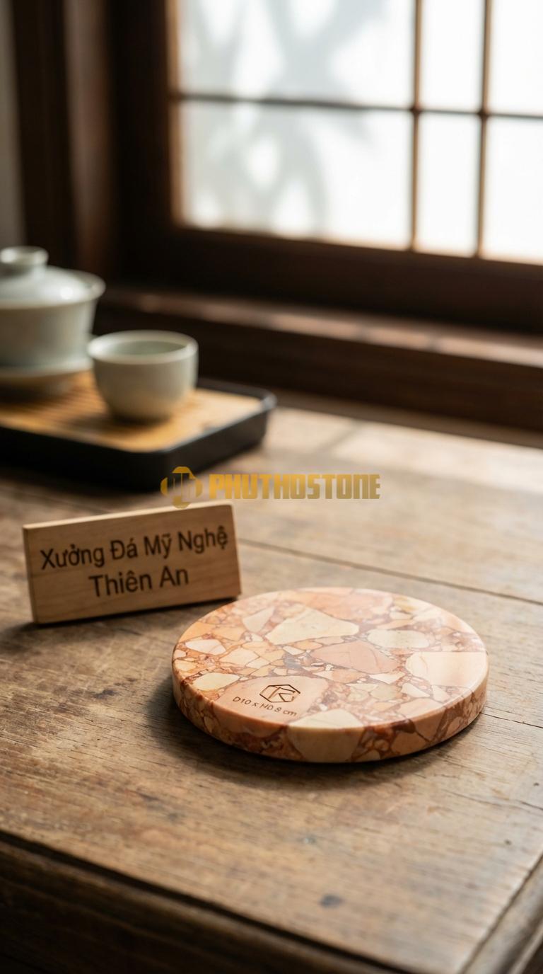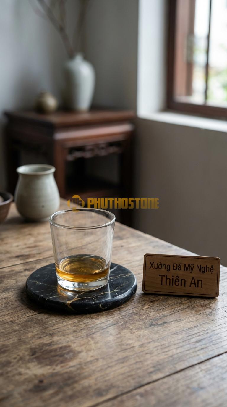 | Lót ly đá Marble cao cấp | Marble trắng / vân mây | 150.000 - 250.000 | Đã bao gồm xử lý chống thấm cao cấp |