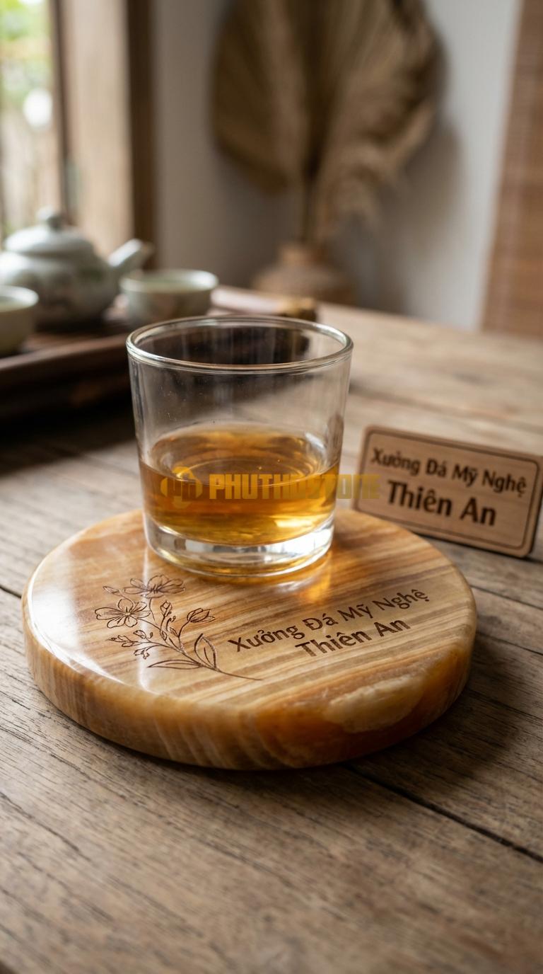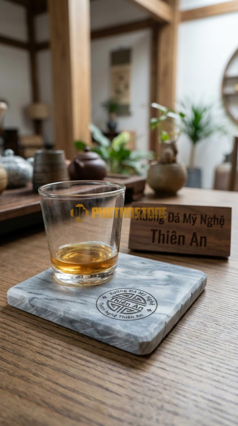 Sức hút của dòng sản phẩm này nằm ở khả năng tùy biến vô tận. Với công nghệ khắc laser, tôi có thể giúp khách hàng đưa bất kỳ hình ảnh, logo hay thông điệp nào lên mặt đá với độ chính xác tuyệt đối. Điều này đặc biệt có ý nghĩa đối với các doanh nghiệp muốn làm quà tặng đối tác hoặc các nhà hàng, khách sạn muốn khẳng định thương hiệu. Tôi từng tư vấn cho một người bạn làm quà tặng kỷ niệm ngày cưới, chúng tôi đã khắc ngày gặp gỡ đầu tiên lên bộ đế lót ly rượu đá có gờ tinh xảo. Đó không chỉ là cái lót ly, đó là một kỷ vật lưu giữ thời gian mà không vật liệu nào làm tốt hơn đá.