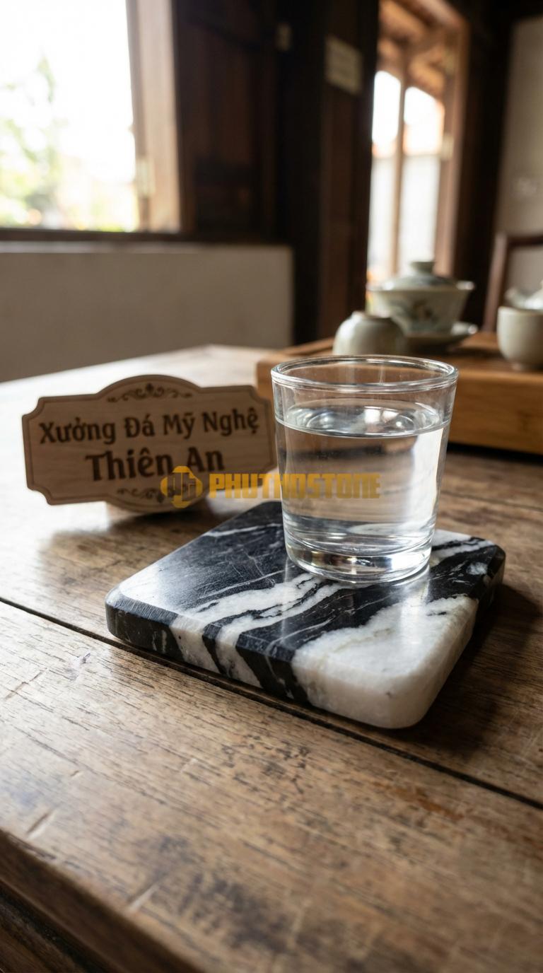 Khả năng tản nhiệt cũng là một điểm cộng lớn. Với những người có thói quen uống trà nóng hay cà phê nóng khi làm việc, đế lót ly bằng đá đóng vai trò như một tấm lá chắn cách nhiệt hoàn hảo. Nó giúp ngăn chặn tình trạng sốc nhiệt làm nứt mặt kính hoặc làm cháy lớp sơn bóng trên bề mặt bàn gỗ. Đây là điều mà các loại lót ly bằng vải mỏng hay nhựa hoàn toàn không thể làm tốt bằng.