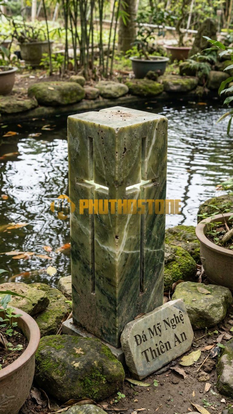 Đèn Đá Serpentine Trụ Vuông Xẻ Rãnh Ở 4 Góc Cạnh Thay Vì Mặt, Tạo Hiệu Ứng Ánh Sáng Chữ x Cao 50Cm