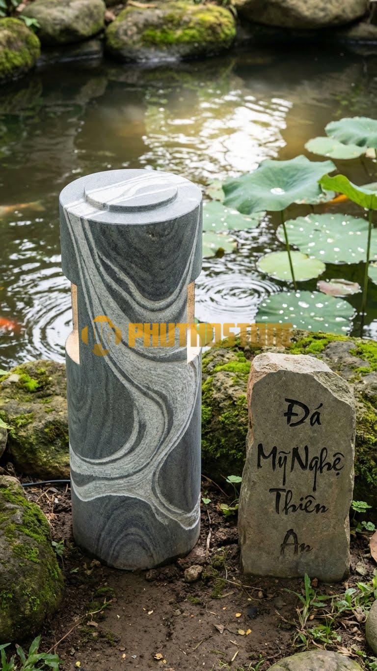 Đèn Đá Vân Mây Trụ Tròn Nguyên Khối Mài Hình Trụ Hoàn Hảo, Đánh Bóng Mờ Sang Trọng Cao 40Cm