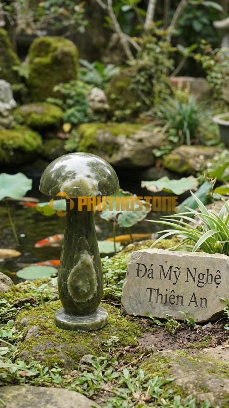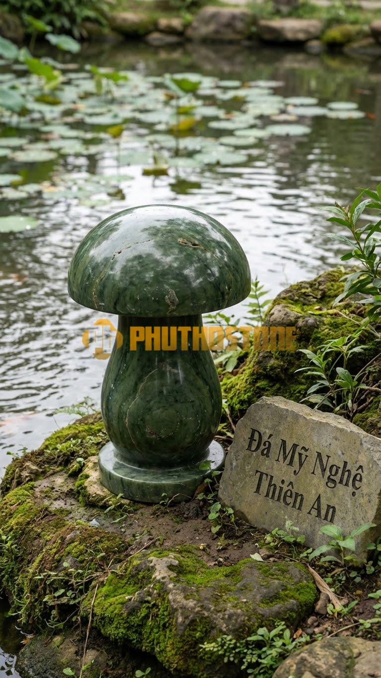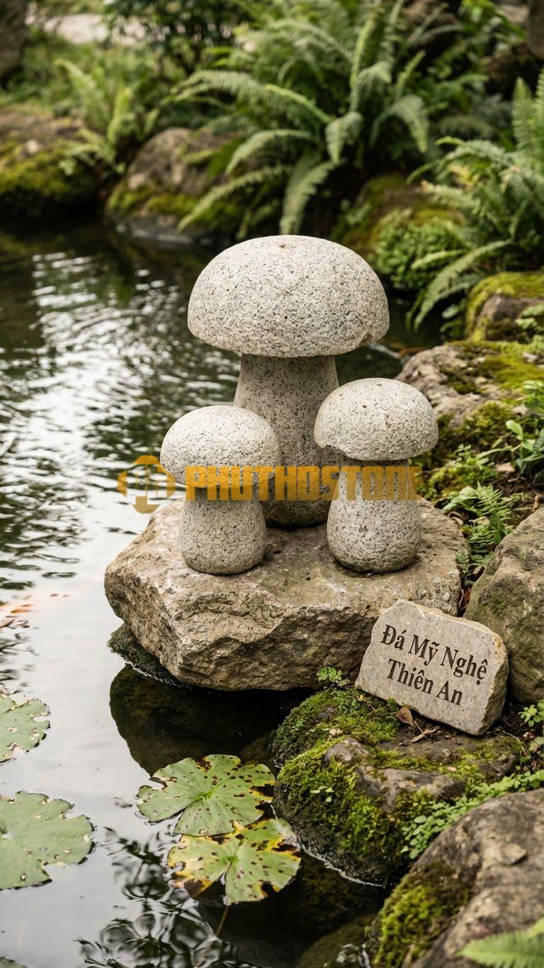 Hình dáng cây nấm trong văn hóa Á Đông thường gắn liền với sự sinh sôi, nảy nở và sức sống bền bỉ. Trong điêu khắc đá mỹ nghệ, việc mô phỏng lại hình dáng này không chỉ đơn thuần là sao chép tự nhiên mà còn là một nghệ thuật cách điệu. Những nghệ nhân tại xưởng của Phú Thọ Stone luôn cố gắng giữ lại những đường nét tự nhiên nhất của đá, kết hợp với các đường đục đẽo thủ công để tạo ra phần mái che mềm mại nhưng vẫn giữ được sự cứng cáp của chất liệu đá.
