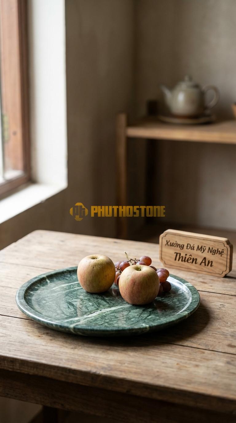 Tại sao bạn nên chọn đĩa đá thay vì đĩa sứ hay nhựa? Câu trả lời nằm ở độ bền và tính thẩm mỹ. Đĩa đá tự nhiên gần như không thể bị trầy xước bởi các tác động thông thường, không bị ố vàng hay phai màu theo thời gian. Càng dùng lâu, hơi ấm từ bàn tay người và sự lau chùi thường xuyên còn khiến đá lên nước, trở nên bóng đẹp hơn. Bên cạnh đó, đá tự nhiên có khả năng kháng khuẩn tự nhiên, rất an toàn khi dùng để đựng thực phẩm trực tiếp. So với nhựa, đá thân thiện với môi trường hơn hẳn, và so với sứ, đá mang lại cảm giác vững chãi, uy quyền hơn cho không gian sống của bạn.