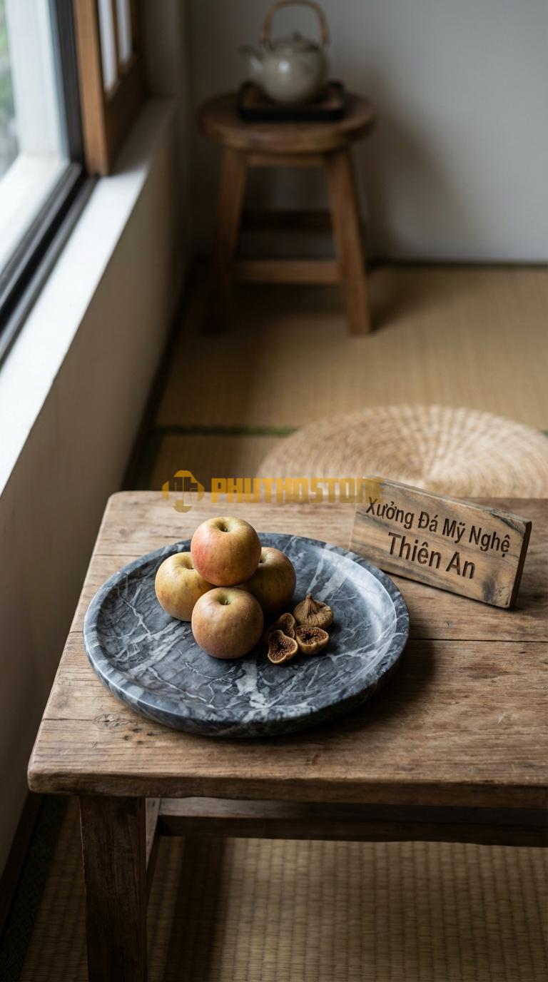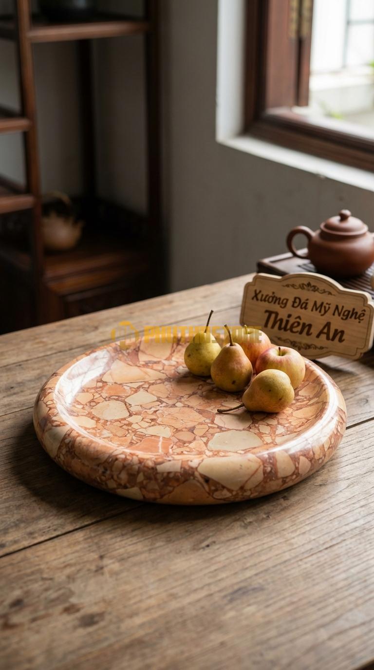 Bên cạnh việc dùng để đựng hoa quả hay bánh kẹo, đĩa đá vân loang còn được nhiều khách hàng của tôi dùng như một vật phẩm phong thủy. Họ tin rằng đá tự nhiên mang năng lượng Thổ, giúp trấn trạch và mang lại sự ổn định cho gia đình. Đặt một chiếc đĩa đá ở phương vị phù hợp trong phòng khách không chỉ làm đẹp không gian mà còn mang lại cảm giác an tâm, thư thái cho gia chủ sau một ngày làm việc mệt mỏi.