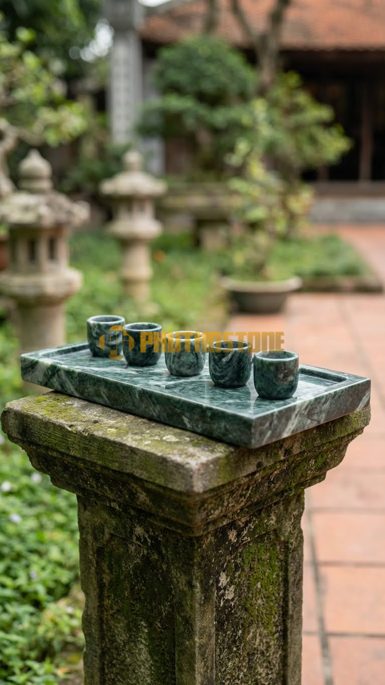 Kỷ 5 Chén Đá Xanh Ấn Độ, khay thẳng đơn giản
