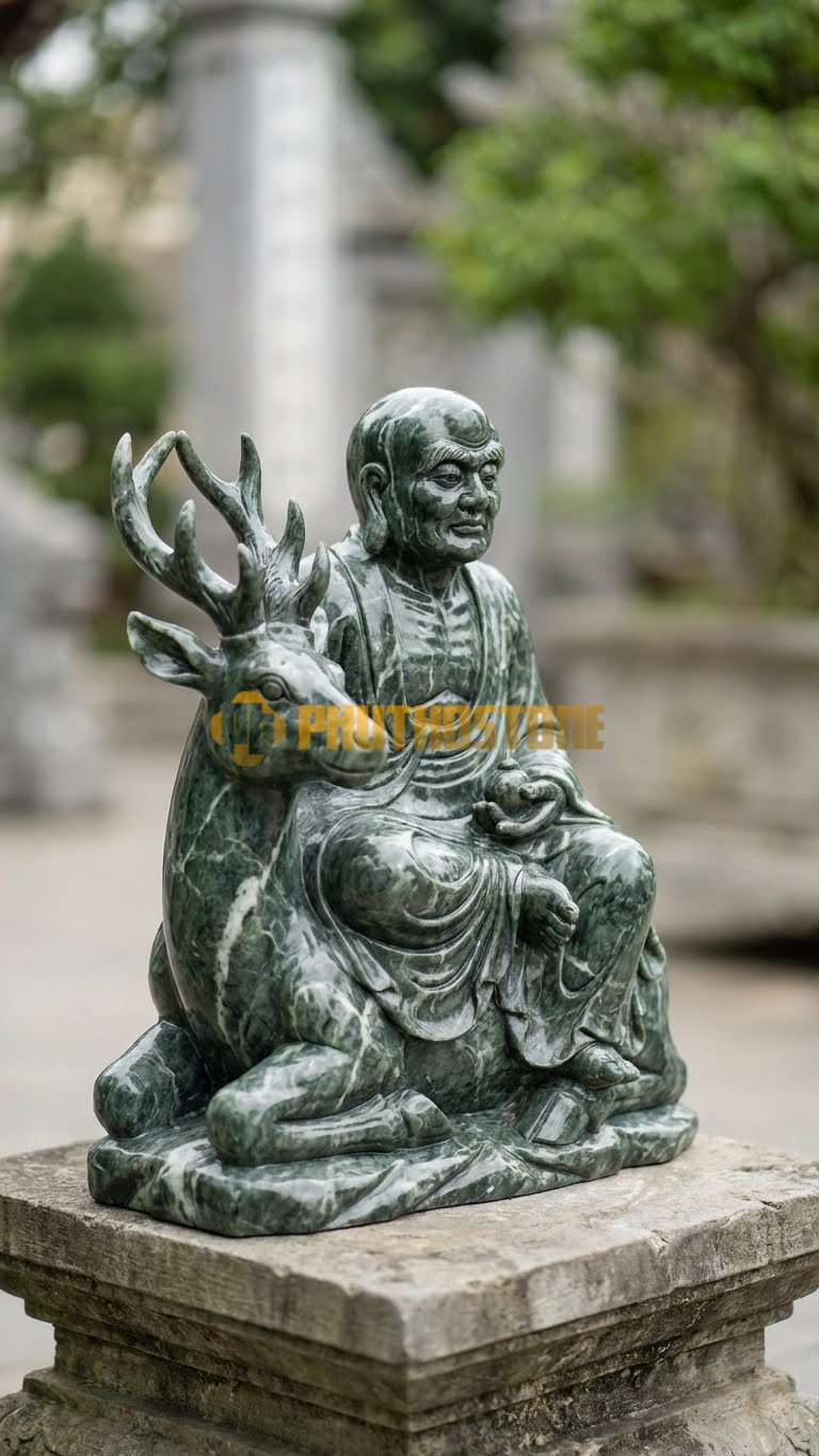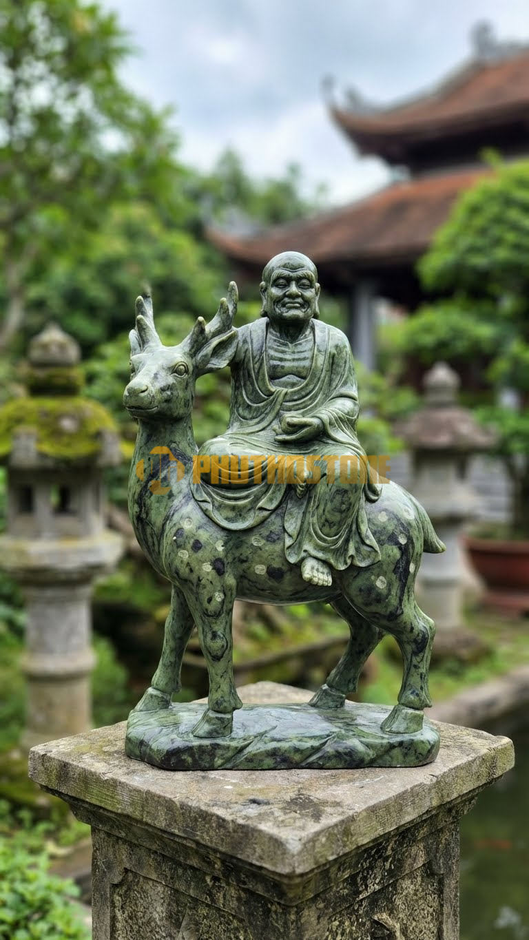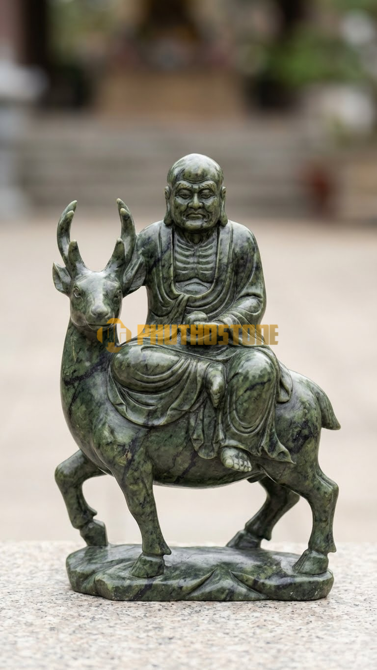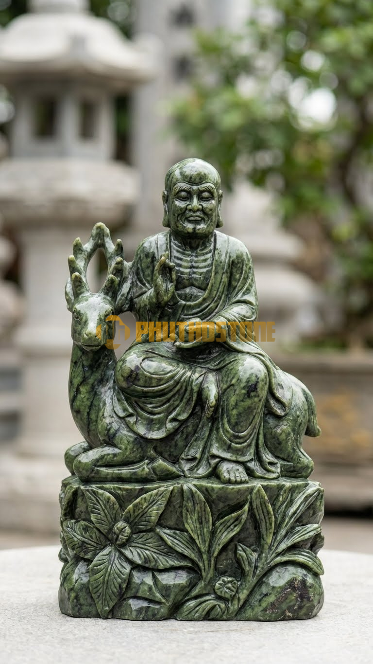 Tượng La Hán Tọa Lộc Đá Serpentine xanh ngọc, hươu thần