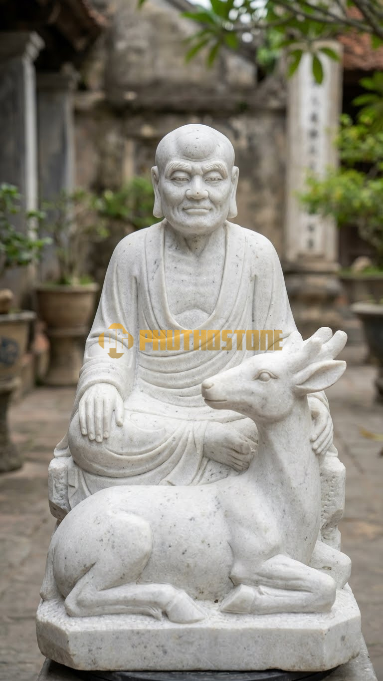 Tượng La Hán Tọa Lộc Đá Trắng Muối Nghệ An, La Hán vuốt đầu hươu