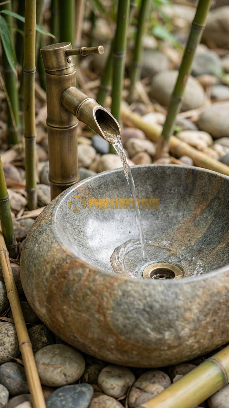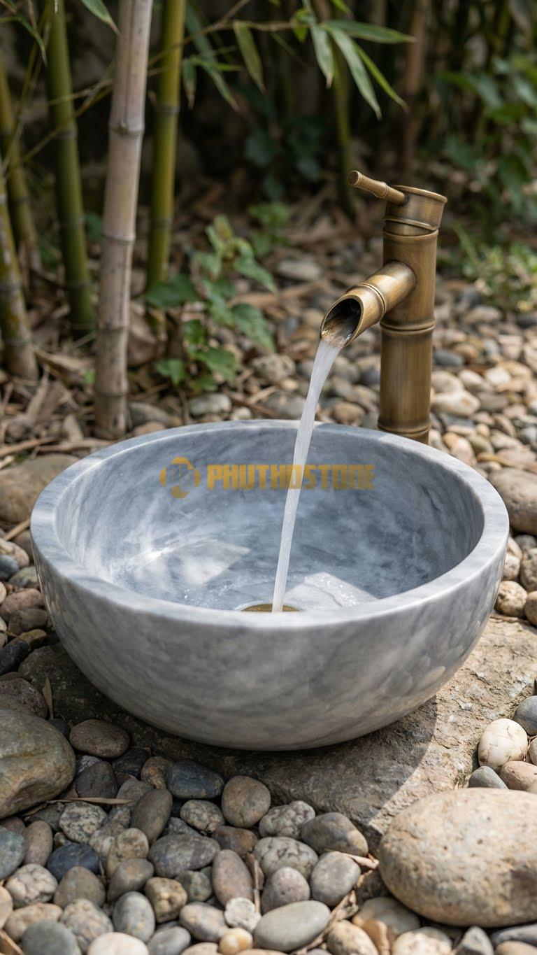Một ứng dụng thú vị khác mà tôi thường gợi ý cho khách là đặt lavabo đá nhỏ ở khu vực sân vườn hoặc ban công. Khi bạn có một khu vườn nhỏ với nhiều cây xanh, một chiếc Chậu Rửa Tay - Đá Cuội đặt trên một trụ đá thô sẽ tạo nên một khung cảnh cực kỳ hữu tình. Nó không chỉ dùng để rửa tay sau khi chăm sóc cây cảnh mà còn đóng vai trò như một vật trang trí phong thủy, mang hành Thổ và hành Thủy vào không gian sống, giúp cân bằng năng lượng và đem lại sự bình an cho gia chủ.