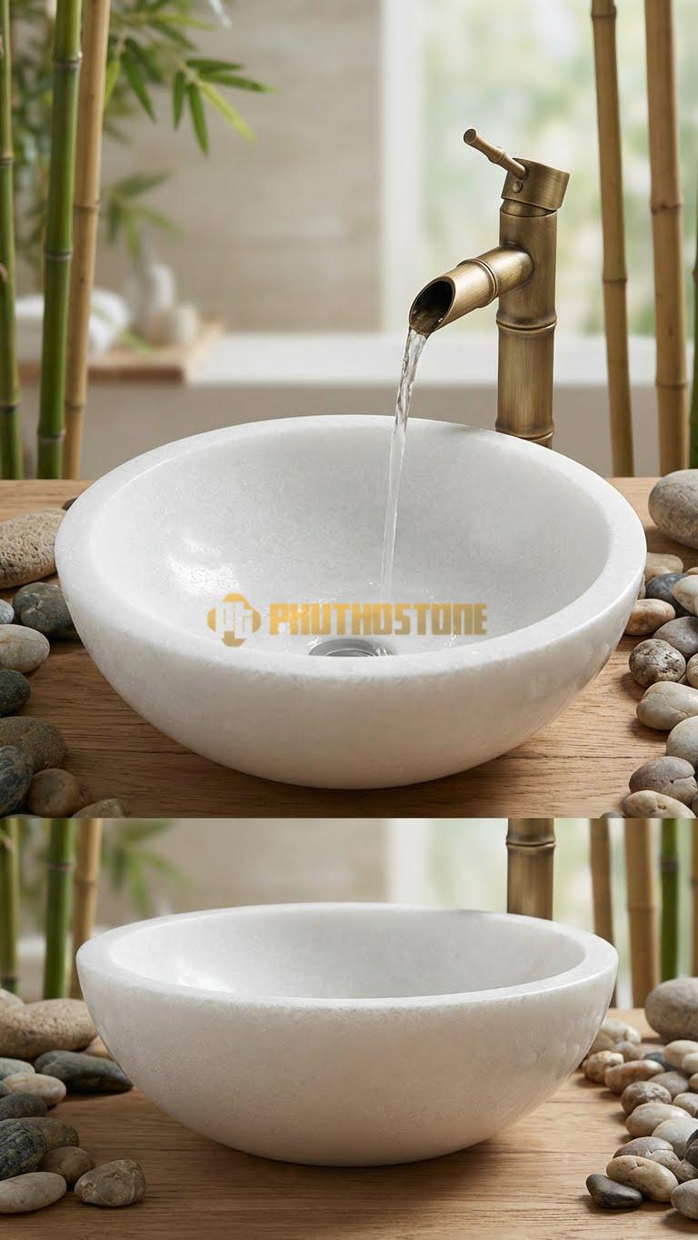 Trong giới đá mỹ nghệ, người ta thường hay nhắc đến những bức tượng khổng lồ hay những cột đá uy nghi, nhưng với tôi, những chiếc lavabo nhỏ lại có một sức quyến rũ rất riêng. Lavabo đá mini không đơn thuần là một vật dụng vệ sinh, nó là một tác phẩm nghệ thuật thu nhỏ. Đối với những không gian như quán cà phê phong cách vintage, các căn hộ studio hay phòng tắm phụ trong biệt thự, việc đặt một chiếc chậu rửa quá lớn sẽ phá vỡ hoàn toàn cấu trúc không gian. Thay vào đó, một chiếc chậu đá với đường kính chỉ khoảng 25cm đến 35cm lại tạo ra một sự cân bằng tuyệt đối, vừa đủ công năng lại vừa đảm bảo tính thẩm mỹ cao.