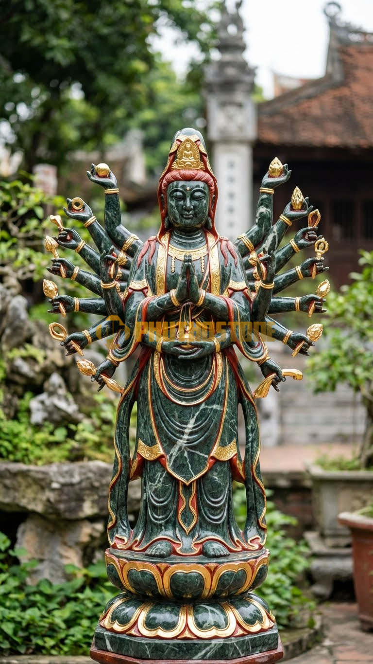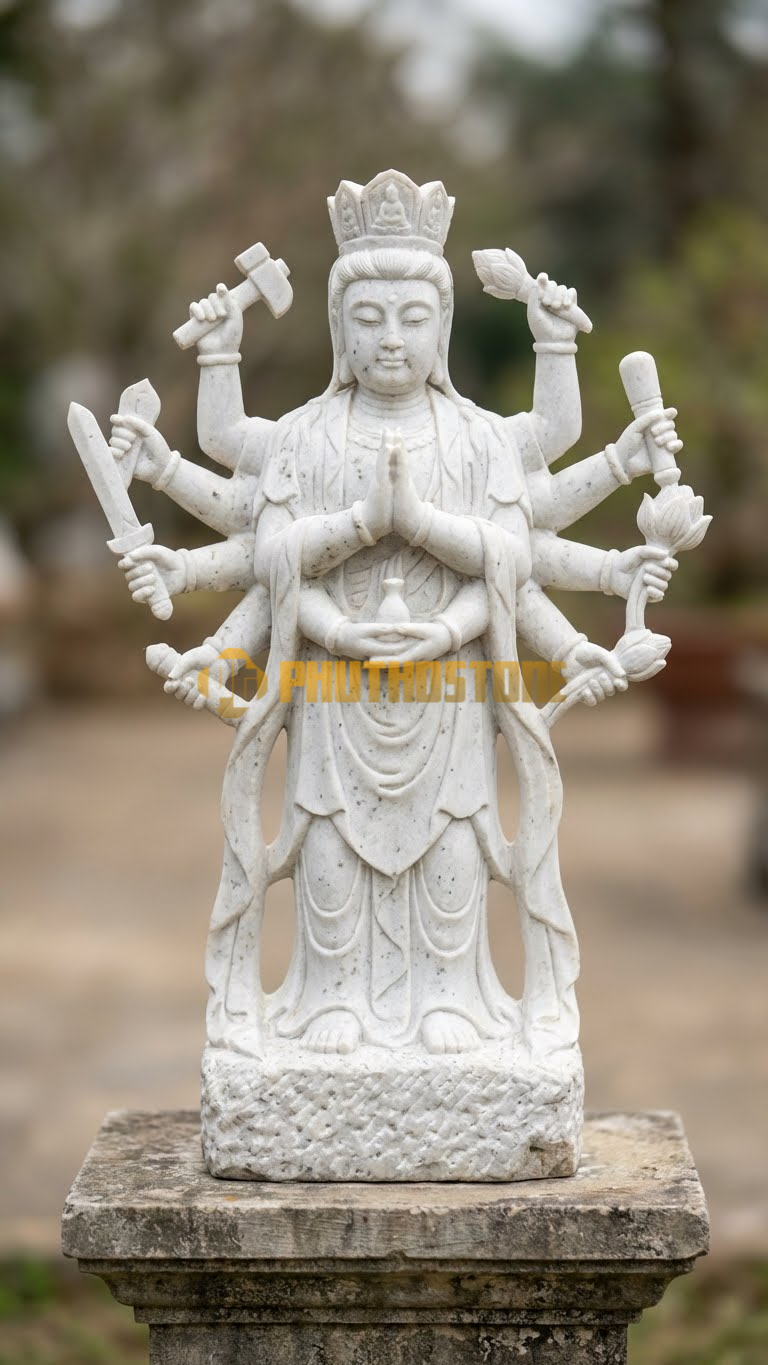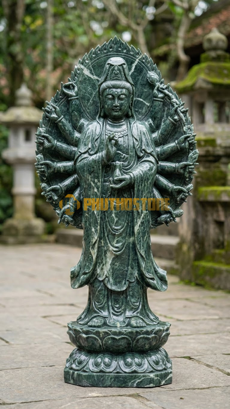 Từ những trải nghiệm thực tế như vậy, tôi nhận ra rằng sự am hiểu về vật liệu và lòng tận tâm với nghề chính là chìa khóa để tạo nên những tác phẩm để đời. Hôm nay, tôi muốn chia sẻ sâu hơn với các bạn về dòng tượng Quan Âm Nghìn Mắt Nghìn Tay – một kiệt tác trong thế giới đá mỹ nghệ mà tôi luôn dành một sự trân trọng đặc biệt mỗi khi thực hiện tại Phú Thọ Stone.