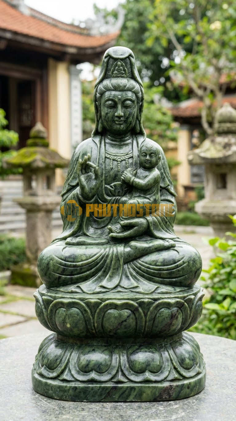 Tượng Quan Âm Tống Tử Đá Xanh Ấn Độ, tượng trưng cho sự sinh sôi nảy nở