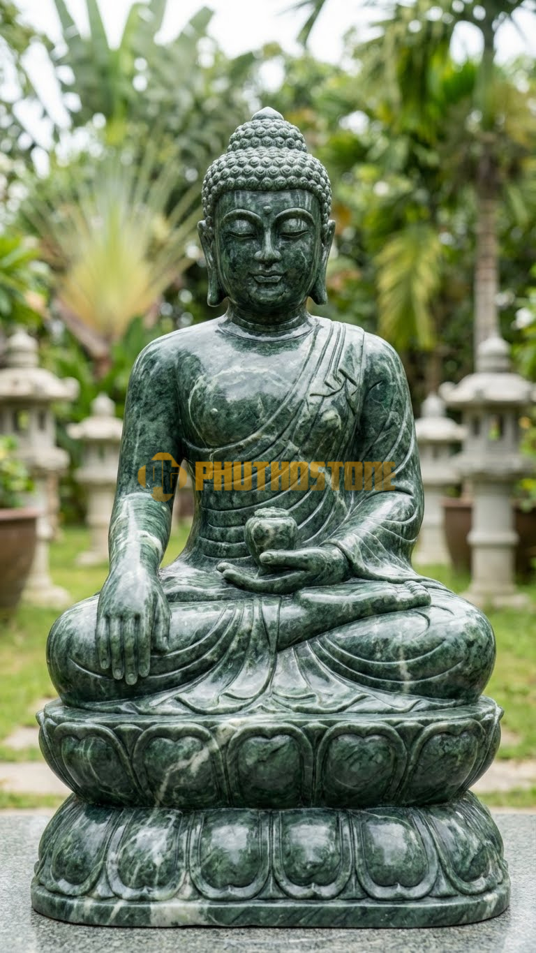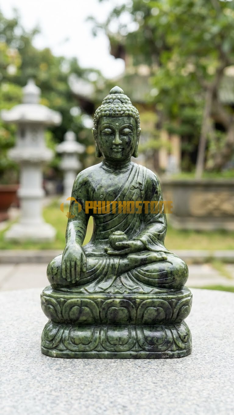 Nếu bạn muốn tìm kiếm một cảm giác tươi mới và tràn đầy sức sống, các mẫu tượng được tạc từ đá ngọc hoặc đá Serpentine xanh là lựa chọn không thể bỏ qua. Màu xanh lục của đá tượng trưng cho hành Mộc, sự sinh sôi và chữa lành, rất tương hợp với ý nghĩa của Phật Dược Sư. Tôi thường khuyên khách hàng chọn loại đá này nếu gia chủ đang gặp các vấn đề về sức khỏe thể chất hoặc muốn tăng cường sinh khí cho ngôi nhà. Những bức tượng mini xanh ngọc thường có độ thấu quang nhẹ, tạo nên vẻ đẹp huyền ảo và sang trọng vô cùng.
