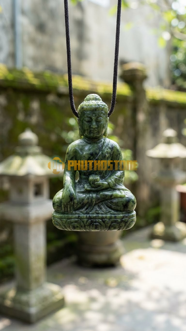 Tượng Dược Sư Mini Đá Serpentine, đeo cổ, mặt dây chuyền lớn,