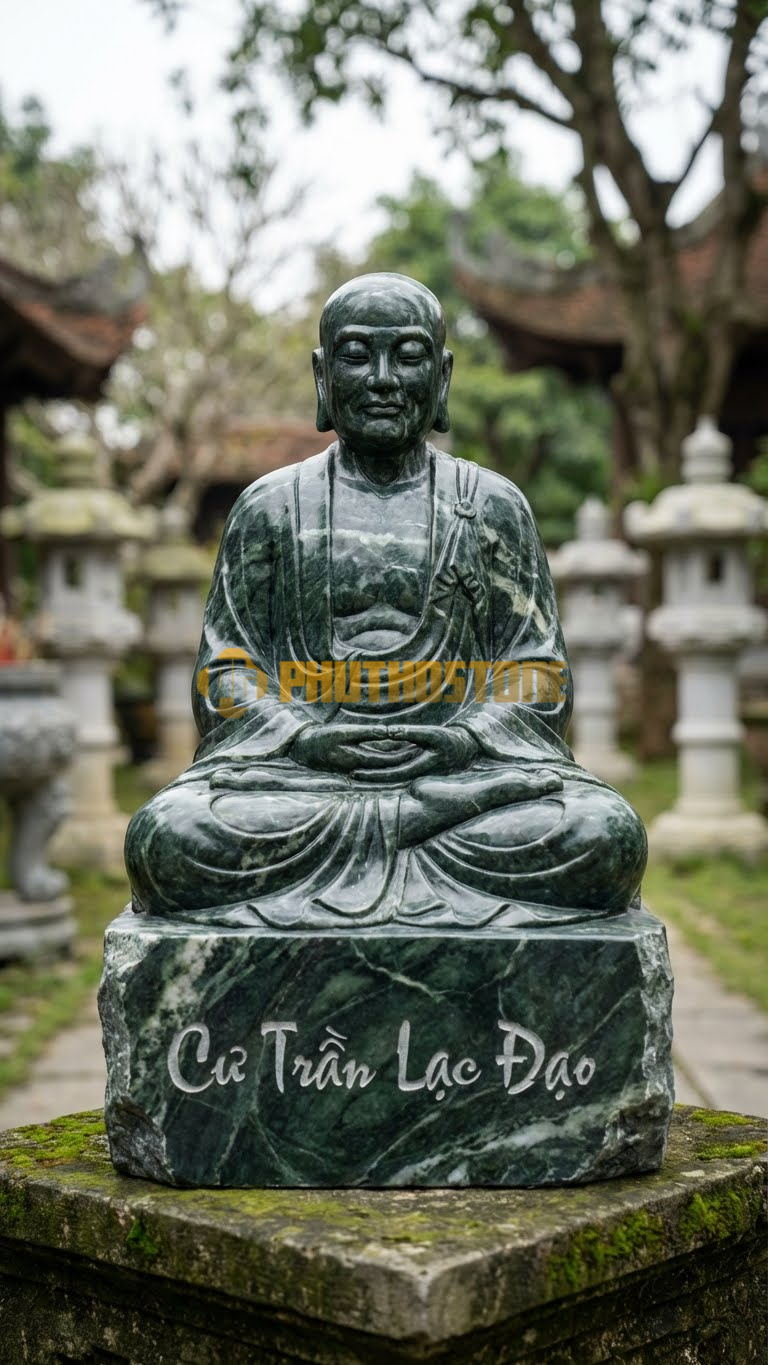 Tượng Phật Hoàng Trần Nhân Tông Đá Xanh Ấn Độ, khắc chữ ‘Cư Trần Lạc Đạo’