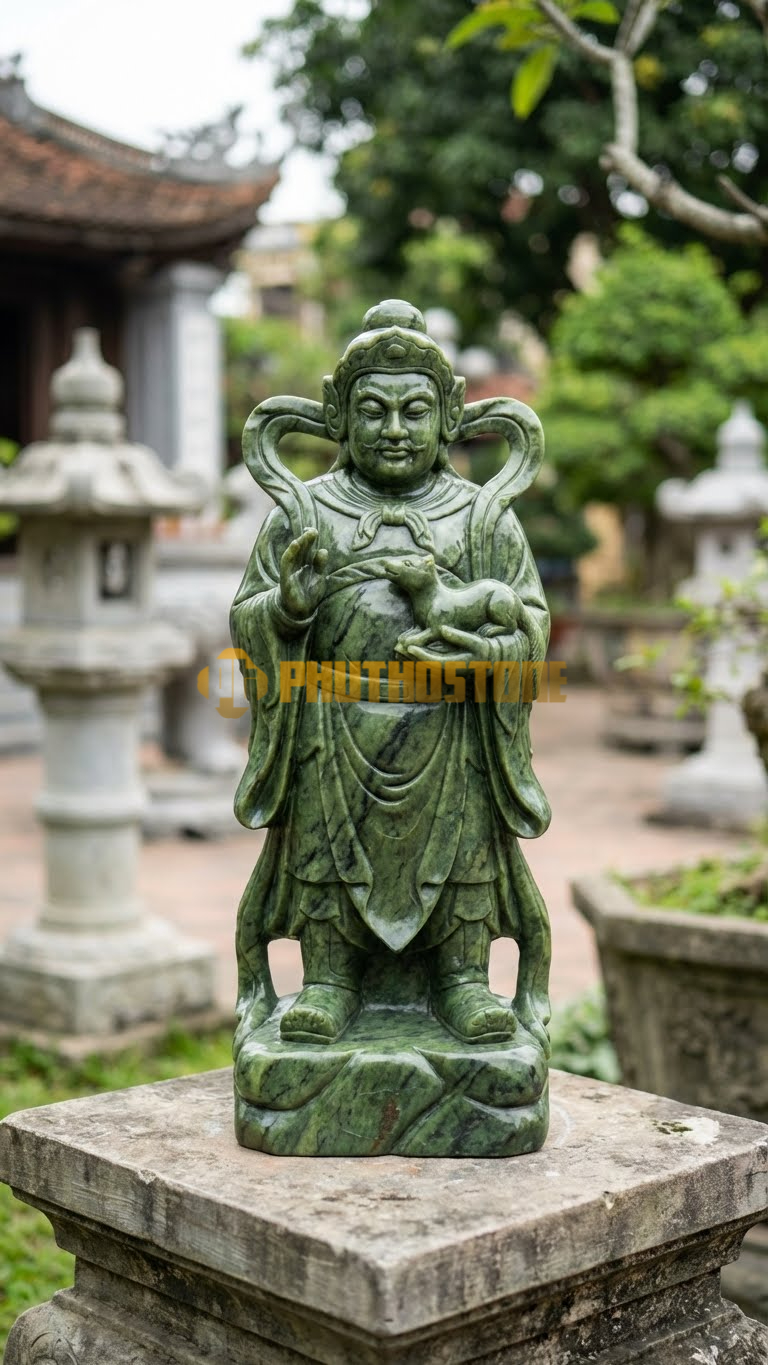 Tượng Tỳ Sa Môn Đá Serpentine xanh ngọc, tượng trưng tài lộc phương Bắc