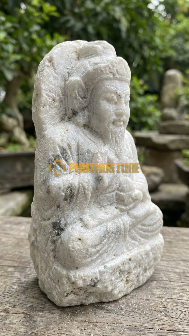 Đá trắng thường được các gia chủ thích vẻ đẹp thanh thoát lựa chọn. Khi tạc tượng bằng đá trắng, bức tượng Thiên Vương trông sẽ rạng rỡ, tỏa sáng dưới ánh đèn hoặc ánh nắng. Tuy nhiên, tôi thường lưu ý khách hàng rằng đá trắng đòi hỏi việc chăm sóc và vệ sinh kỹ hơn để giữ được màu sắc ban đầu. Loại đá này rất phù hợp với những công trình mang hơi hướng hiện đại hoặc đặt trong không gian nội thất trang trọng.