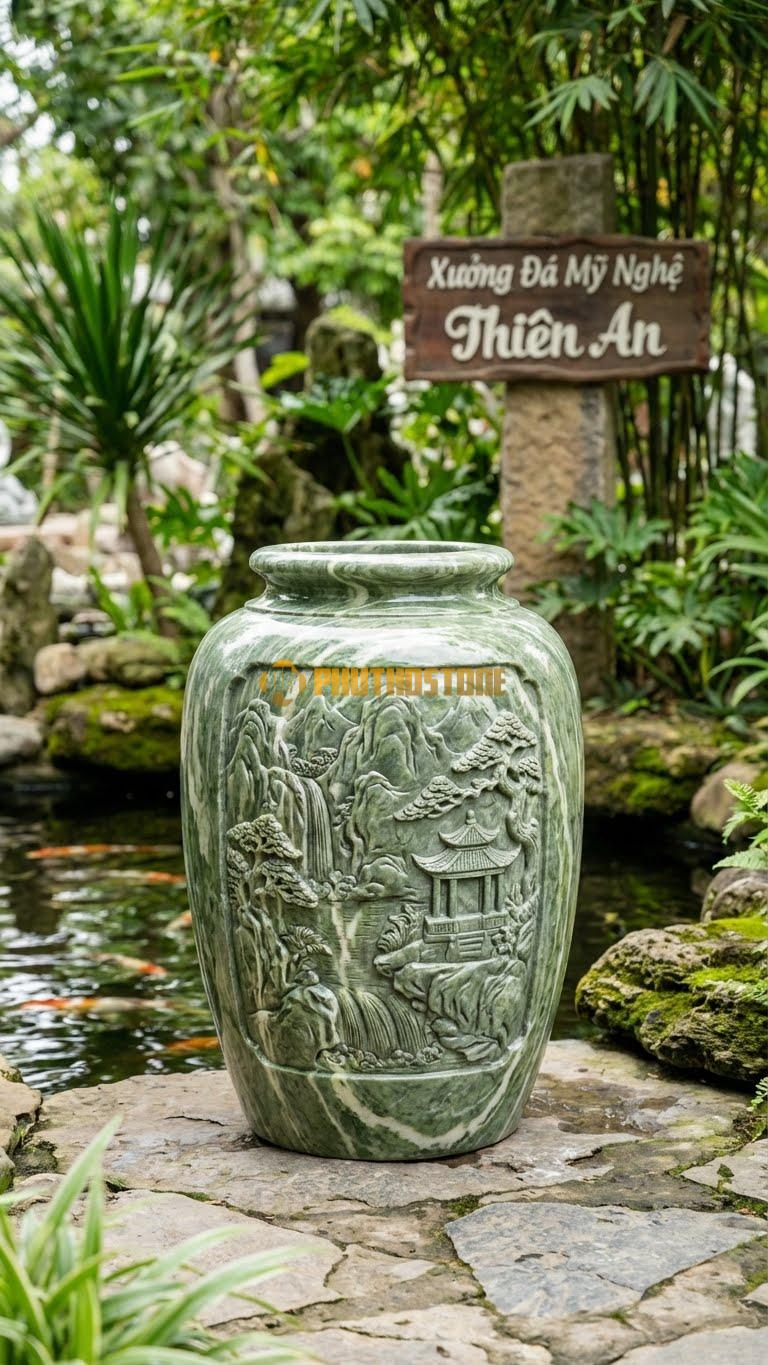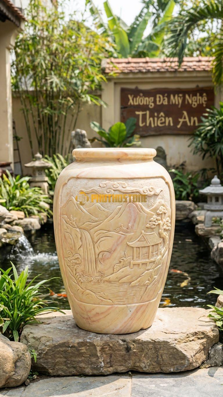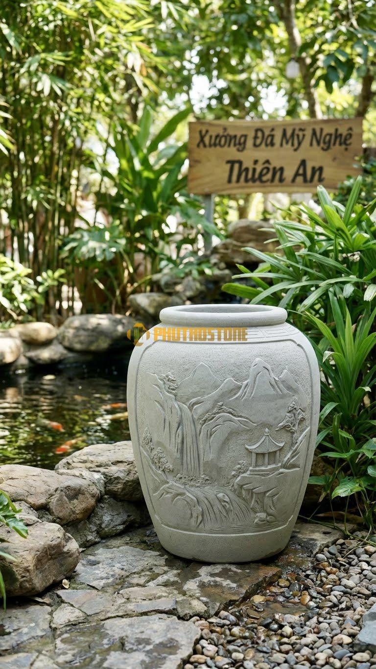 Trong giới đá mỹ nghệ, có những sản phẩm sinh ra chỉ để làm đẹp, nhưng cũng có những sản phẩm sinh ra để kể chuyện. Vại đá Sơn Thủy Hữu Tình chính là một ví dụ điển hình. Đây không chỉ là một vật dụng chứa nước đơn thuần mà là một bức tranh phong cảnh thu nhỏ, nơi có núi cao vợi, có dòng nước chảy trôi và có cả tâm tình của người nghệ nhân tạc đá. Đối với tôi, mỗi khi nhìn vào một chiếc vại được hoàn thiện, tôi lại thấy ở đó sự giao thoa tuyệt vời giữa bàn tay con người và tinh hoa của lòng đất.